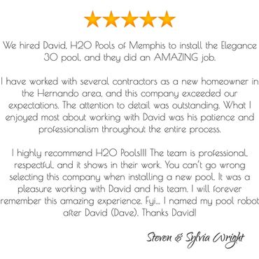At H2O Pools of Memphis, LLC, we pride ourselves on providing exceptional customer service. Our team is always here to answer any questions and ensure your satisfaction during your fiberglass pool installation .